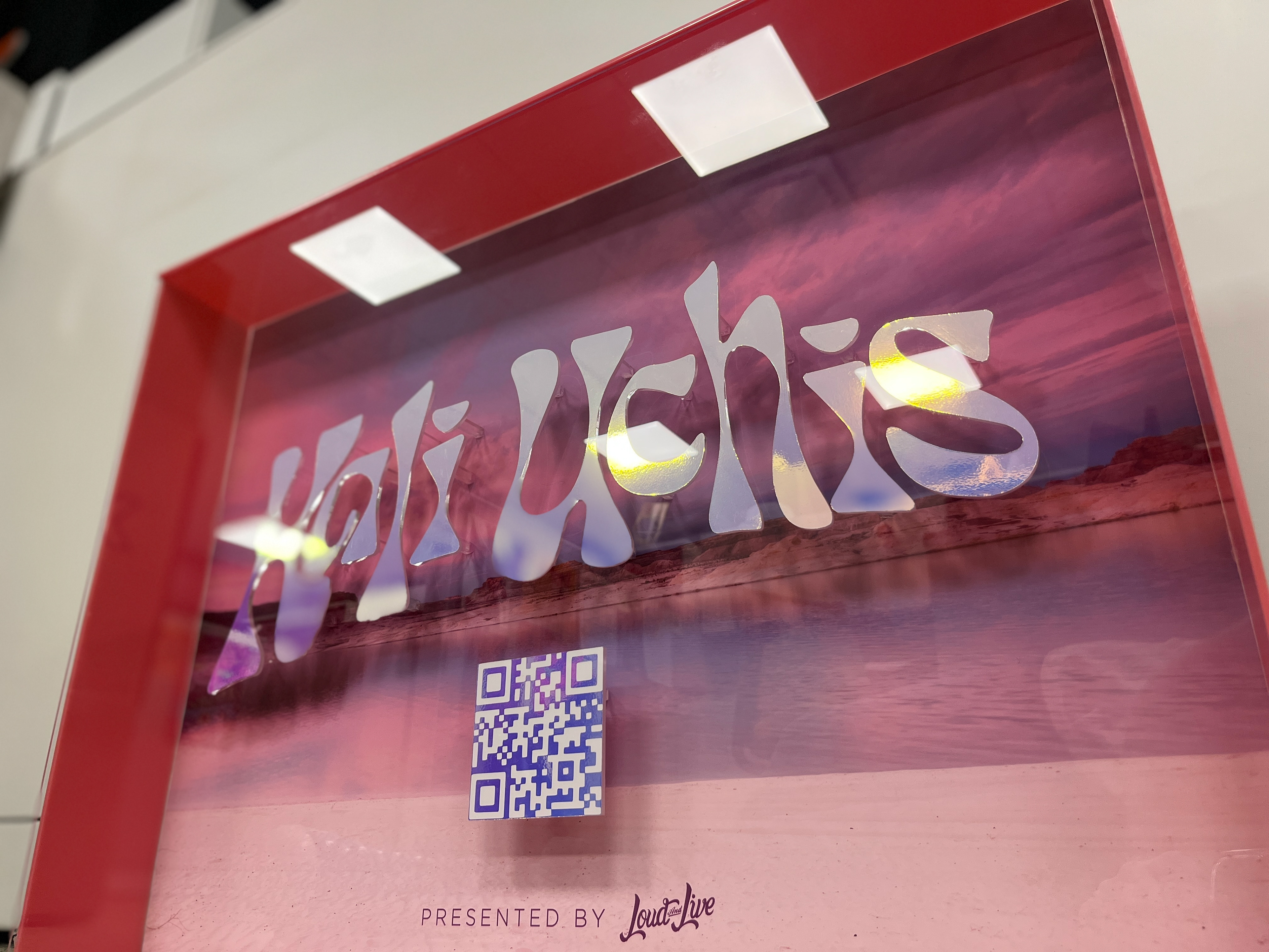 Once the box and letters were cut, we went about applying the films. While the centerpiece is the name 'Kali Uchis', I am particularly proud of the QR code. This QR code houses the link to the actual pitch deck. We had never seen a physical QR code before, and wanted to make it work. So we die-cut the QR on a sheet of adhesive vinyl and applied it over the reflective material to give it dimension (and it still worked).