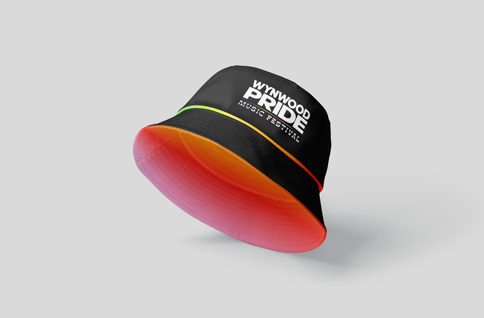 One of the standout pieces of Wynwood Pride 2022 merchandise was the custom-designed hat. Featuring the festival’s signature color scheme of vibrant technicolor gradients, the hat was reversable; designed to be both stylish and versatile. The minimalist base allowed the bold colors to pop, making it a subtle yet eye-catching accessory that quickly became a festival favorite.